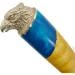 Клинок ножа Сокол откован из мозаичного дамаска. Рукояти могут быть изготовлены из разных материалов. Навершие в форме головы сокола и больстер отлиты из мельхиора. В комплект входят кожаные ножны, в зависимости от модели нож может быть заключен в красивую подарочную коробку.